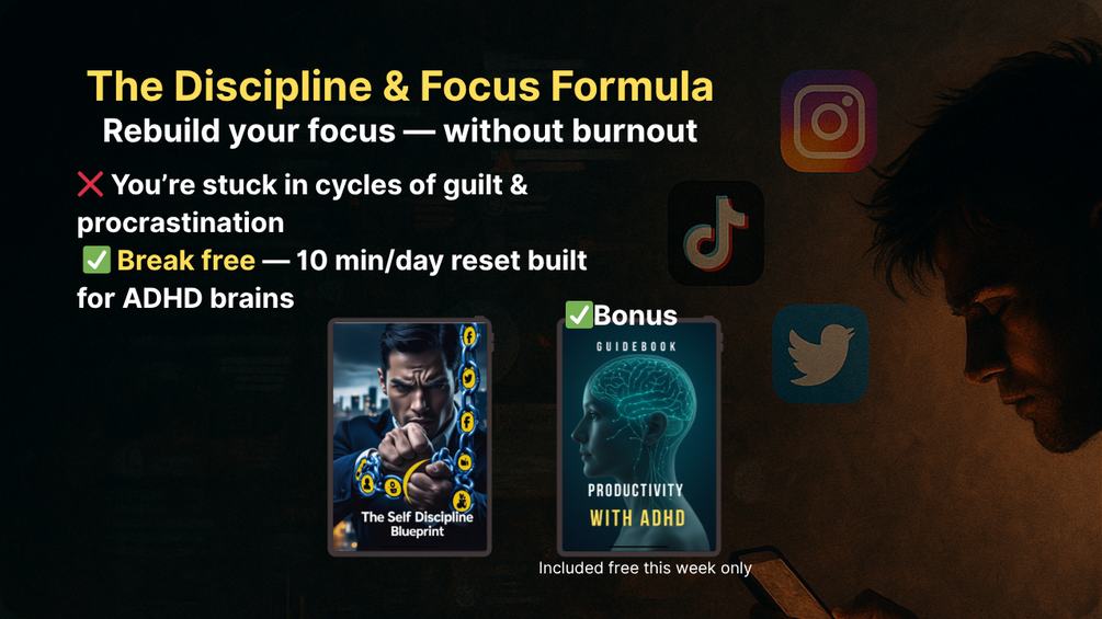 You'll get: Two powerful guides to help you build unshakable discipline and stay focused — even with an ADHD brain.